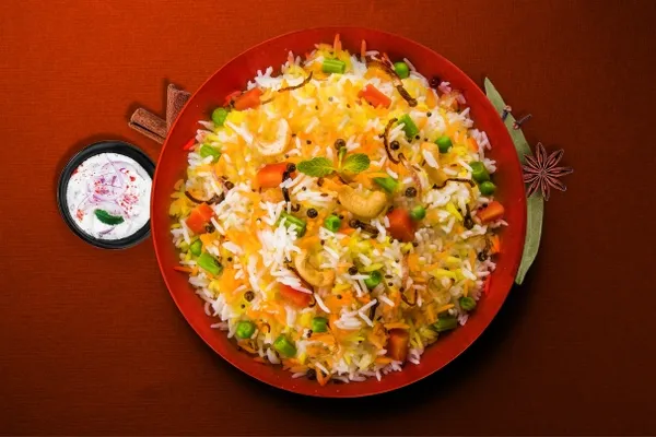 🍲 Crafted with passion and precision, our Veg Biryani is a symphony of textures—crispy fried onions adding a delightful crunch, roasted cashews lending a buttery richness, and tender vegetabl... Read More